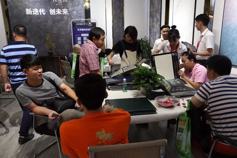 “ 7月10日,广州建博会进行到第三天,帝卡斯生态艺术壁材展馆持续火爆,艺术涂料受到诸多意向加盟商的热烈追捧,当场踊跃签约,还有数百位客商在积极咨询洽谈中。”