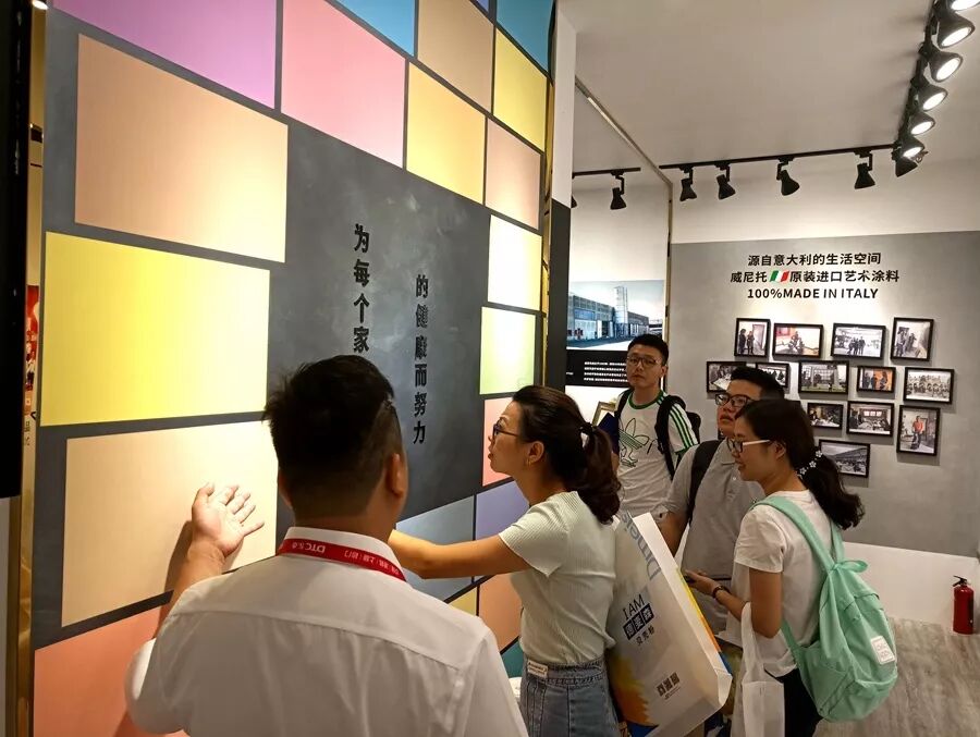 展馆内的产品,色彩丰富自然、手感柔和细腻、强大的降解甲醛性能,展现了墙面装饰的多面性,以及墙面装饰为生活带来的无限可能。