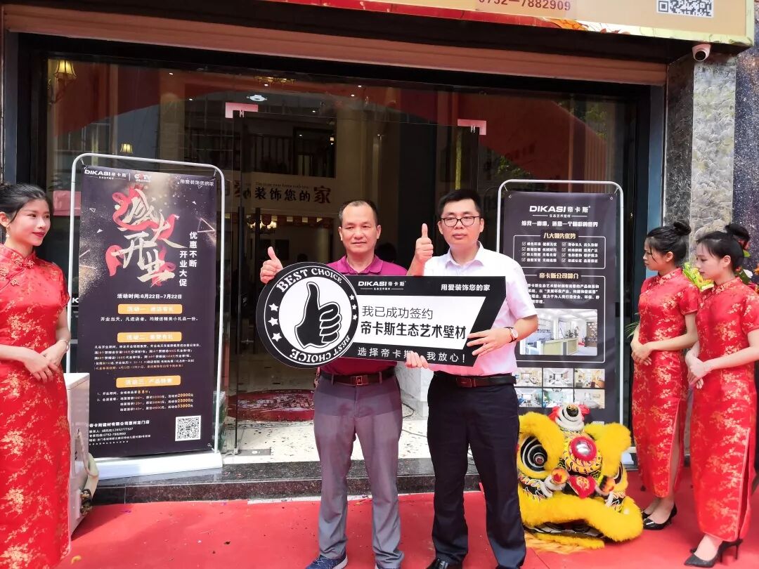 本次开业盛典的圆满开展离不开好的团队,惠州龙门县帝卡斯生态艺术壁材服务中心的全体员工全力以赴,为本次开业活动做准备,一些细节也都安排得当。帝卡斯总部也派出了销售经理及设计师团队支持本次开业活动,力保开业活动圆满进行!